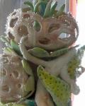 kleine Blumengebinde, darin tummeln sich seltsam kopflose Wesenbruchsicher verpackt